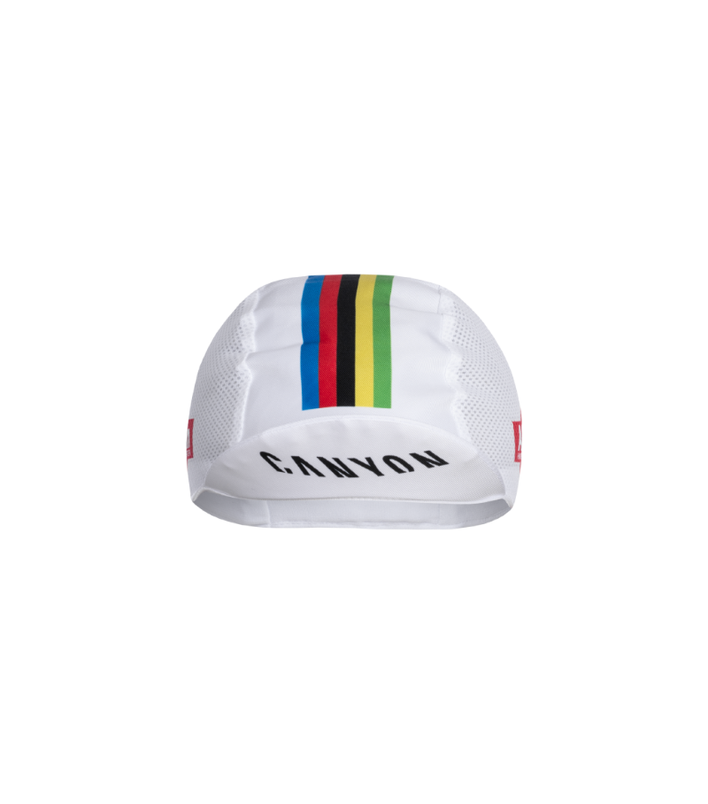 This exclusive replica summer cap, in the white design of the UCI cycling road race world champion Mathieu van der Poel, is made from a combination of a lightweight, quick-drying fabric and mesh side panels to deliver a high level of breathability that helps to keep your head cool during warm weather. The fabric also retains its colour despite prolonged exposure to direct sunlight. It features a reinforced peak and comes in several different sizes to that you can find your perfect fit.