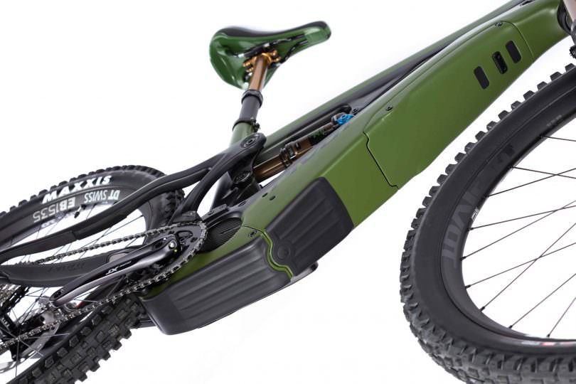 A 29″ carbon frame full suspension trail e-bike with high-end components.