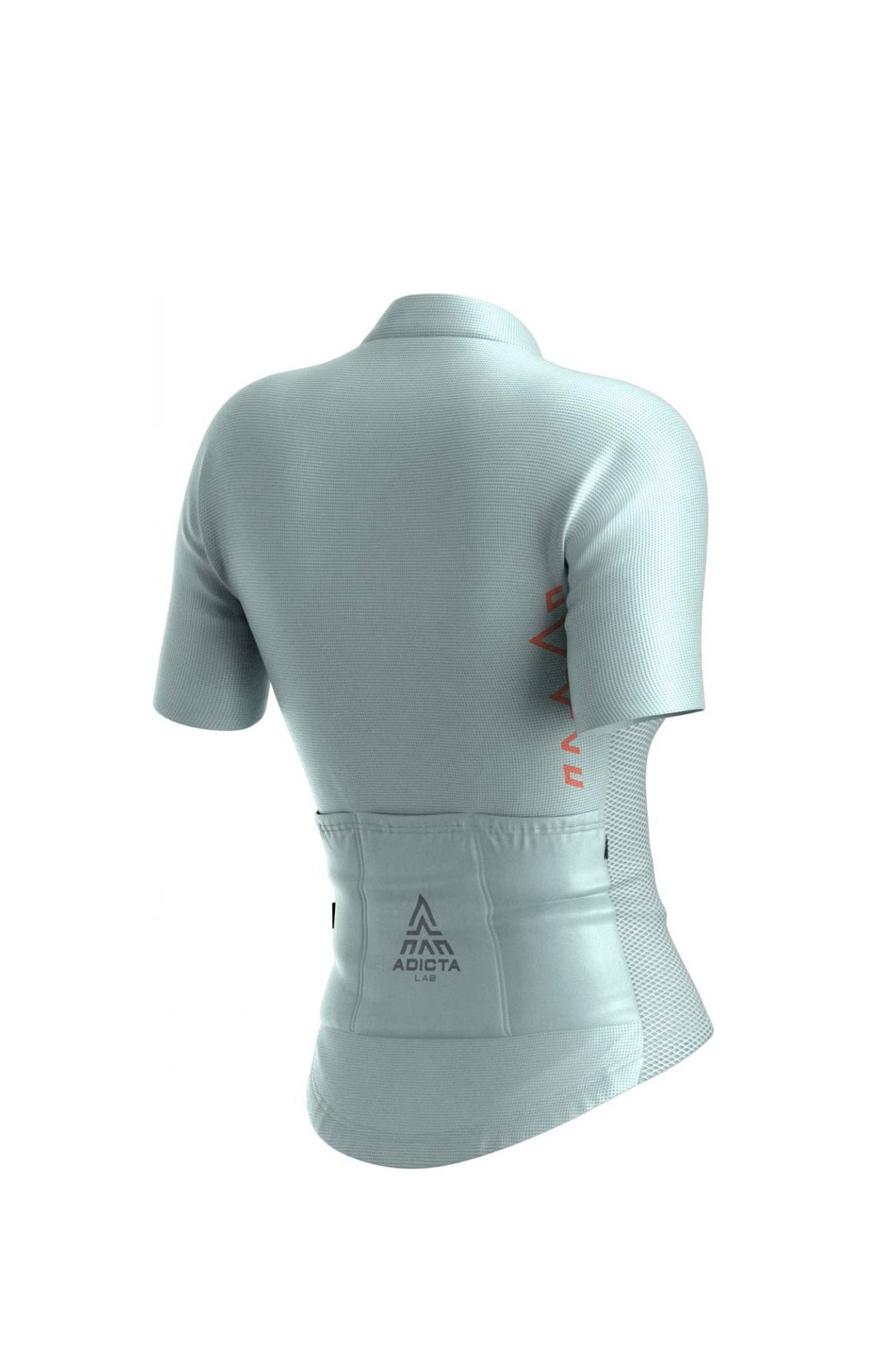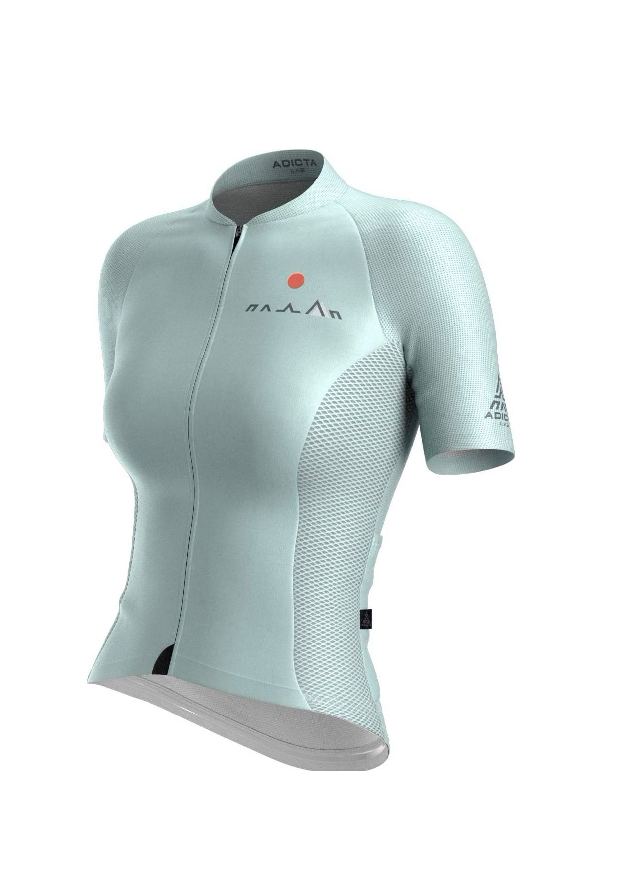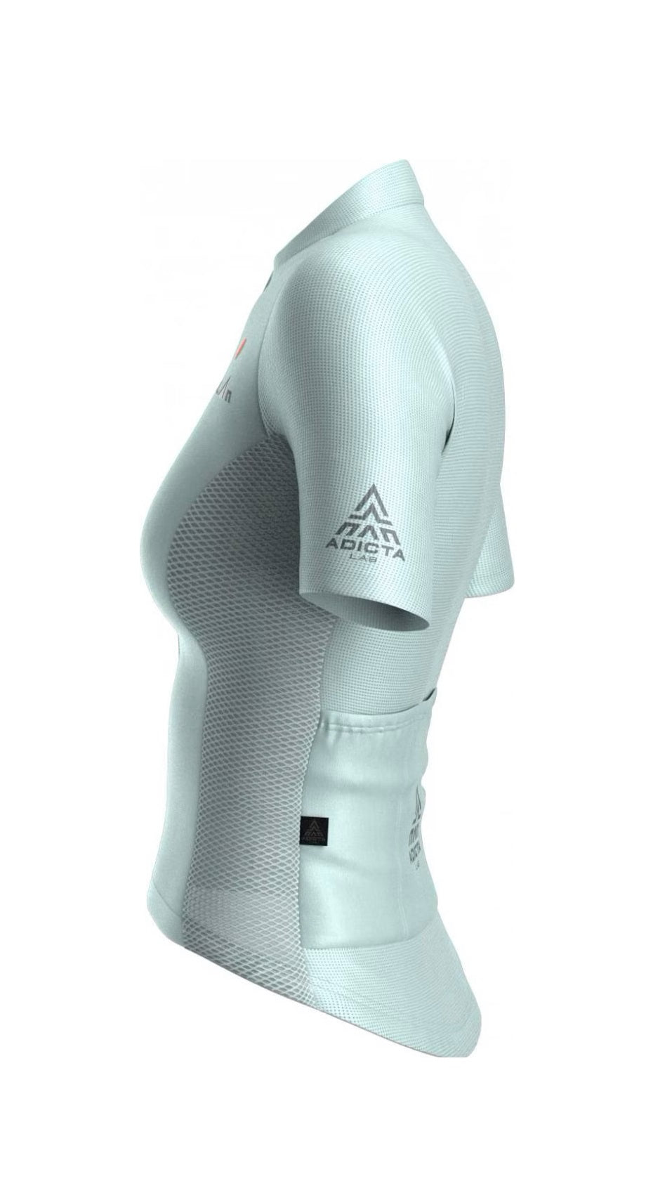 WOMEN'S CYCLING JERSEY RESPONSIBLY MADE FROM RECYCLED PET PLASTIC BOTTLES. CONTEMPORARY ELEGANCE MEETS LIGHTWEIGHT PERFORMANCE AND PREMIUM COMFORT.