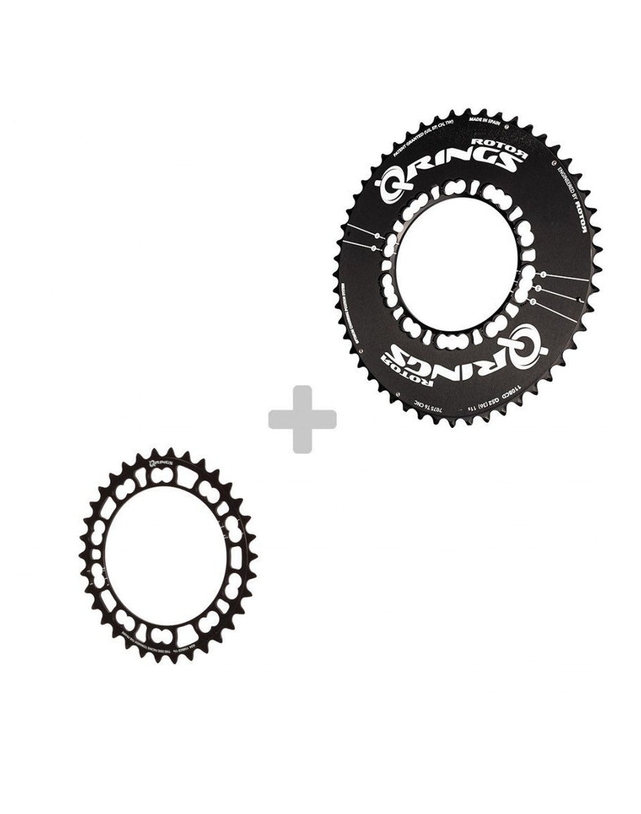 If looking as fast as you feel influences the way you ride, then our wind-shucking aero Q-Rings with a 110BCD allow you to orient your chainrings around your riding style...literally. Q-Rings were designed to boost your cycling performance by varying drivetrain resistance inline with your legs´ natural strengths and weaknesses when pedaling. 5 Optimum Chainring Positions (OCP) allow you to fine-tune your improved riding experience by orienting your chainrings around the most productive part of your pedal stroke. Subtle but efficient 10% ovality and compatible with your compact 110BCD cranks, aero Q-Rings work with your body´s biomechanics to yield maximum efficiency and enable you to go further and faster with less fatigue.